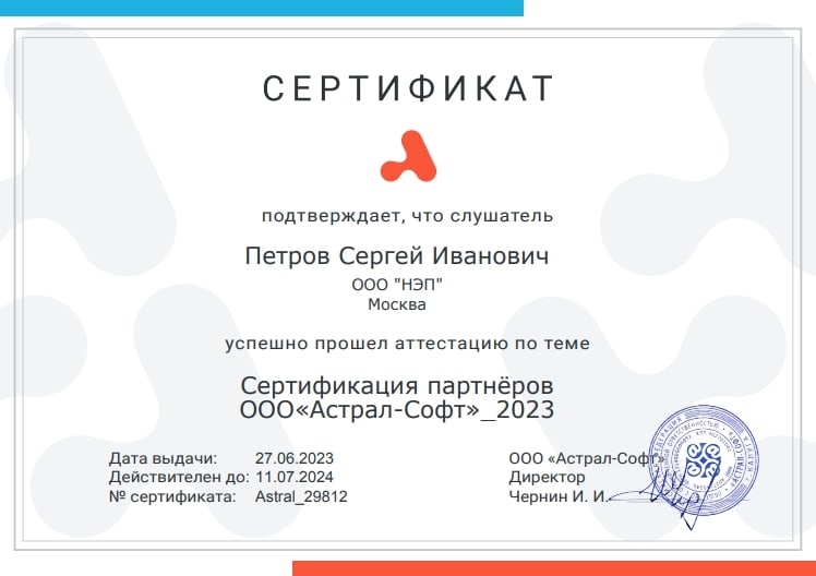 Статус официального партнера Удостоверяющего центра АО «Калуга Астрал» говорит о компетенциях специалистов компании «НЭП» и дает право на передачу документов, необходимых для изготовления сертификата ключа проверки электронной подписи. УКЭП используется в сервисе 1С-Отчетность, 1С-ЭДО, 1С-ЭТП, 1С-ОФД и др.